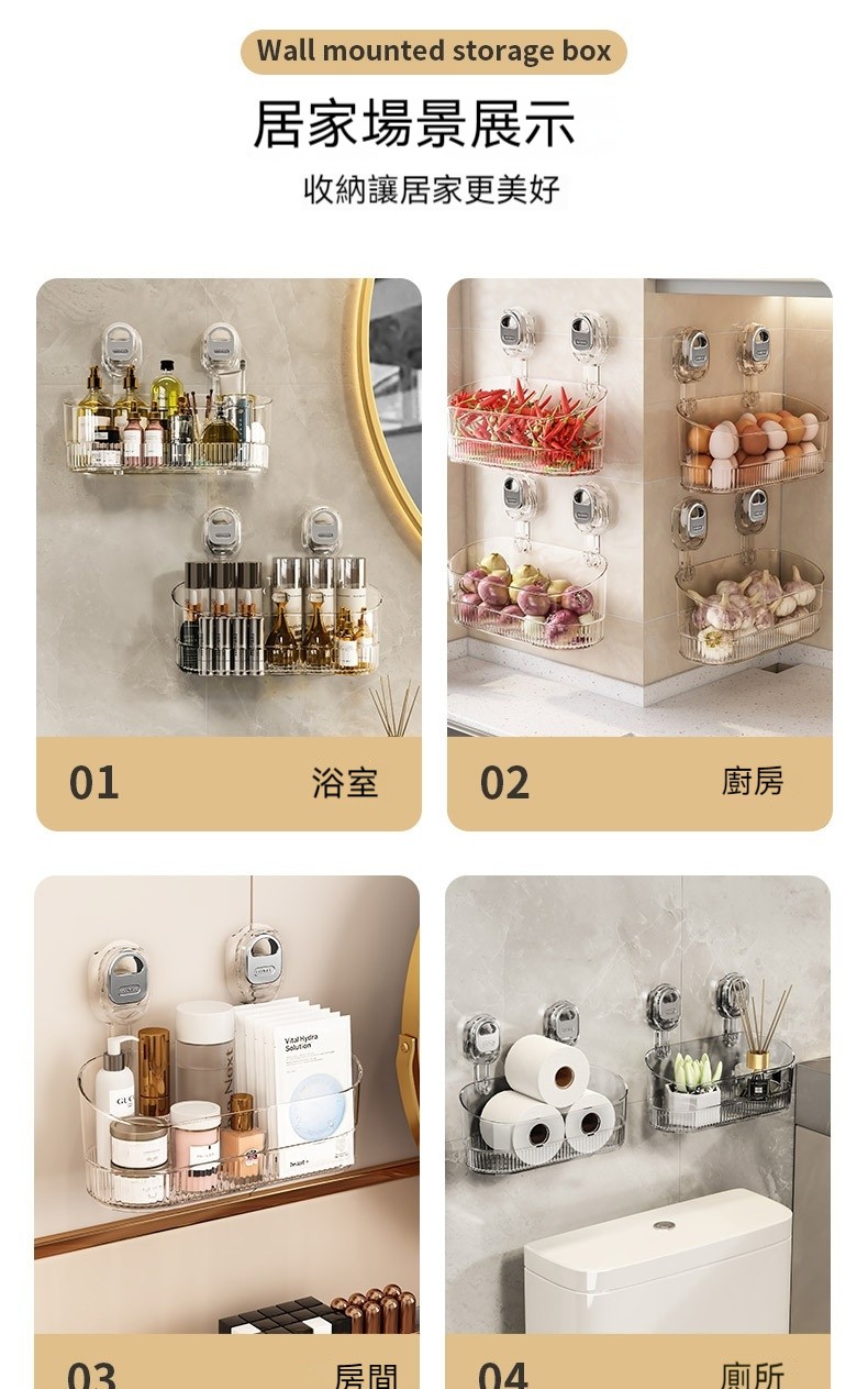 15分鐘前【免打孔吸盤置物架】免鑽孔不傷牆!隨心換位不留痕!乾淨整潔收納無拘束! - 【虧本特價】四入組 - NT$1280(均價320/入)